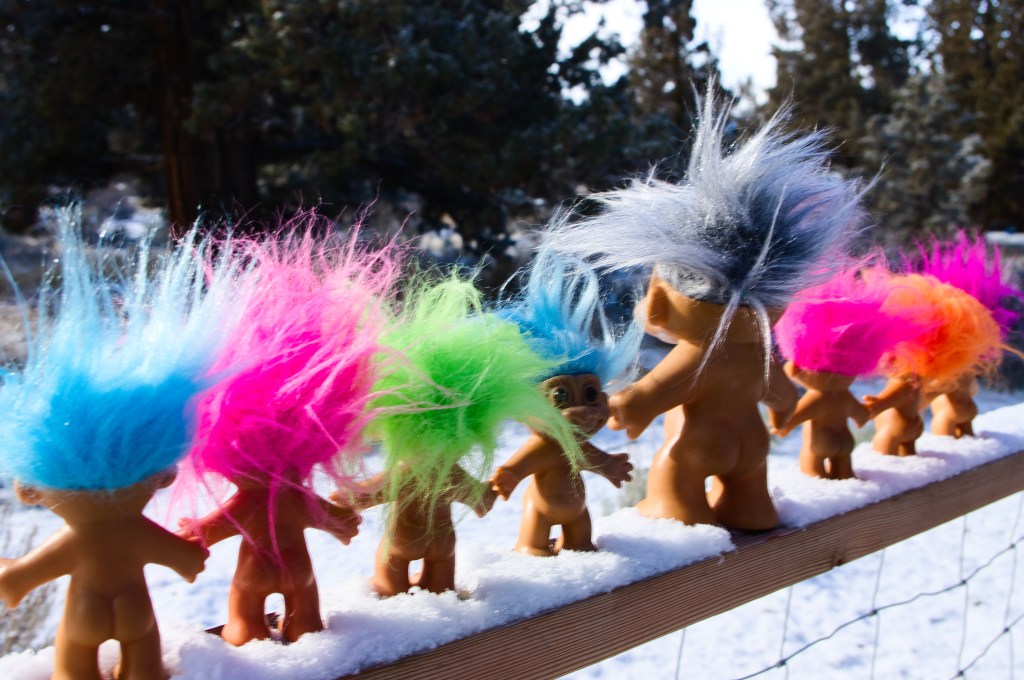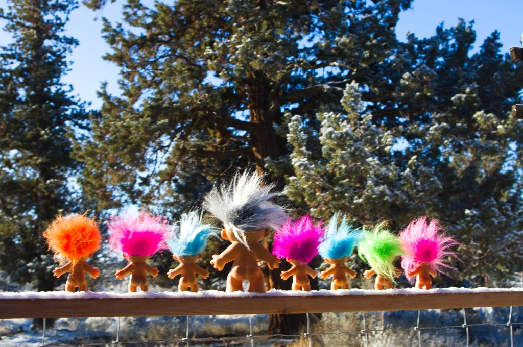 I was looking at my woodpile and thinking I needed to move more wood up to my deck, when I realized I was hearing tiny voices. Voices that sounded familiar, and then I heard “Yep, this is the place… I wonder where the Troll Family is?”