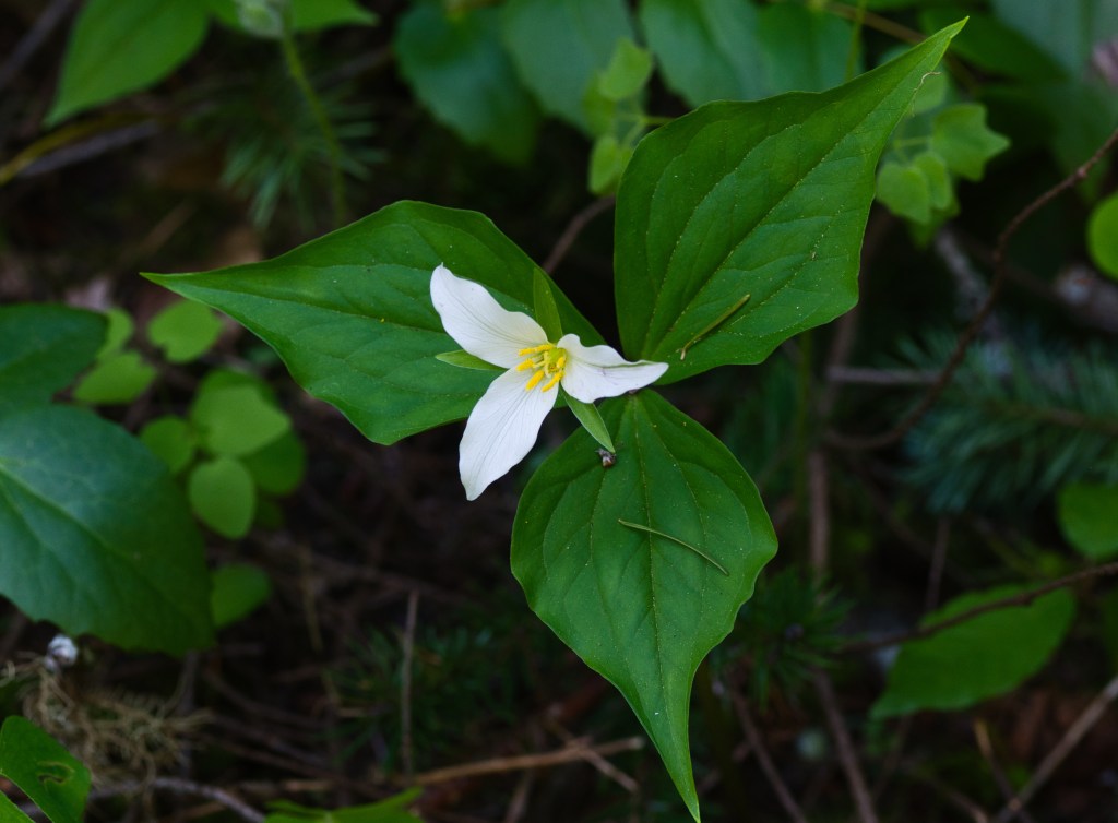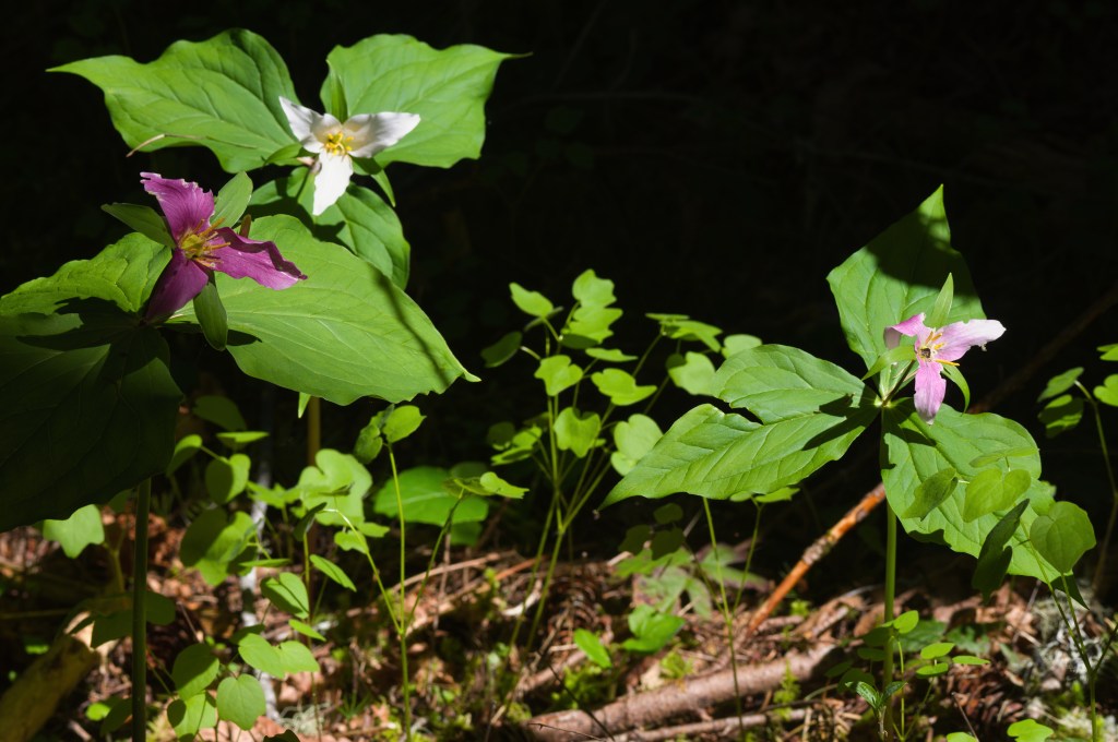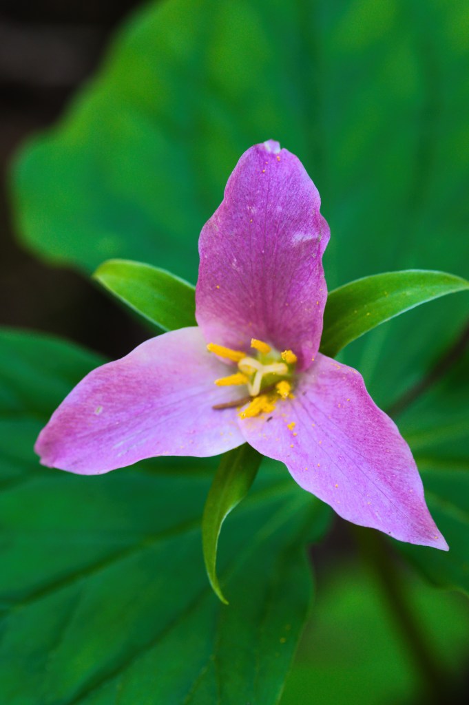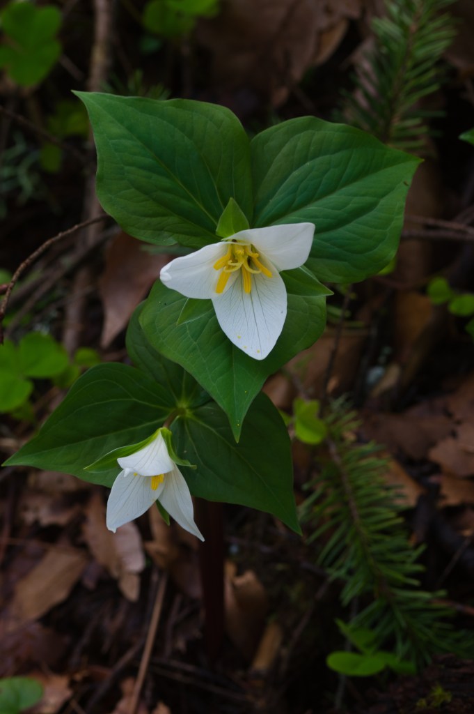 This trillium was just past its prime, when the white petals change to magenta. The trail down to the river was very shady, perfect for trilliums orchids and wood violets