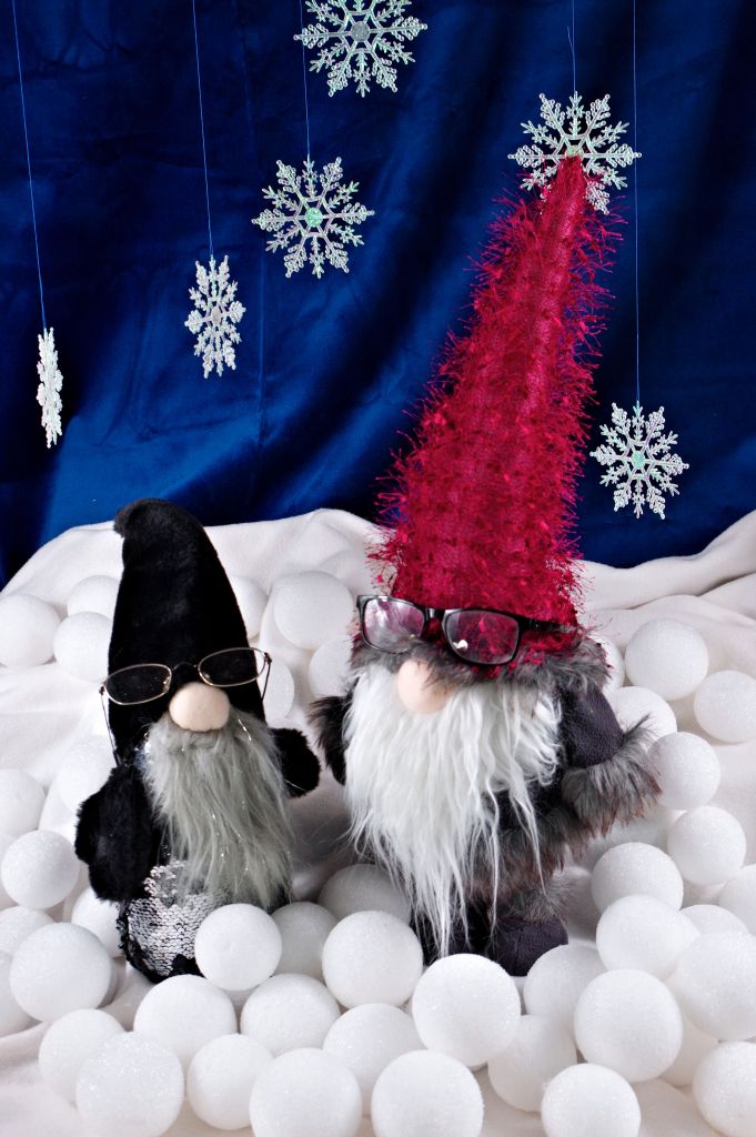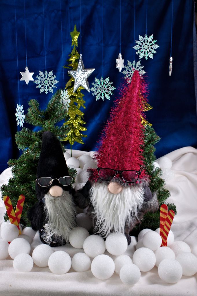 By the next day the skis were painted and ready to use and the gnomes went home sporting my reading glasses.