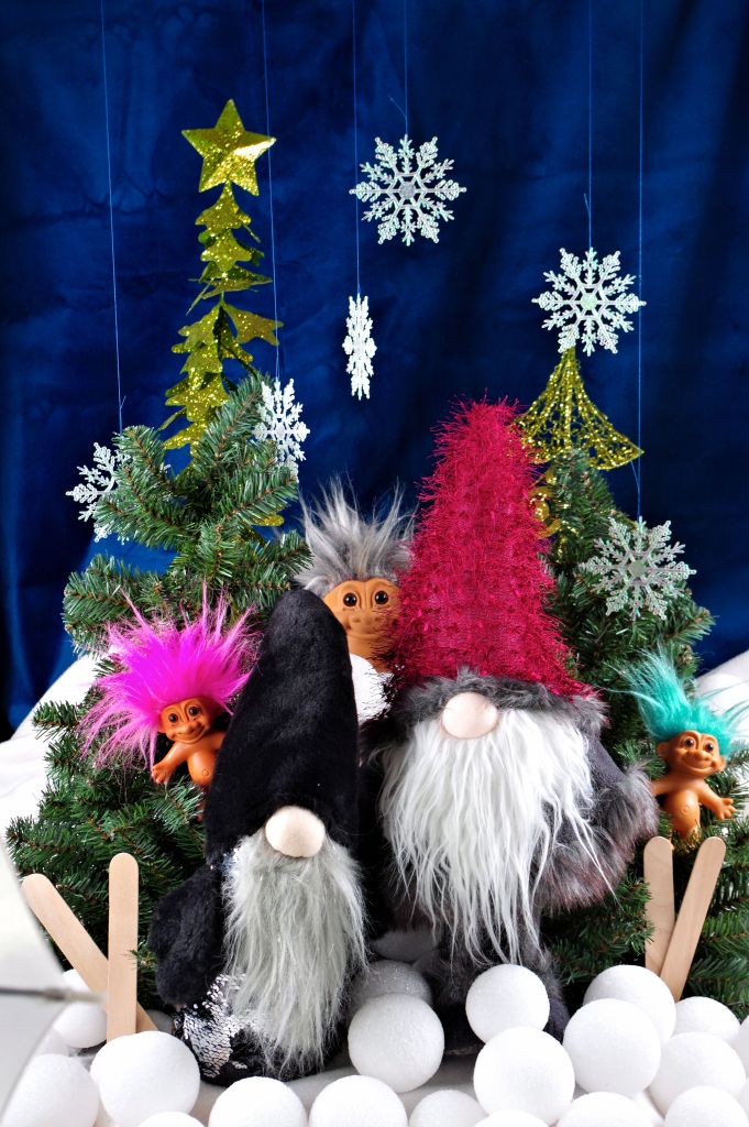 The trolls and the gnomes are first cousins of the mischievous kind. You never know what they are brewing up when they get together. I heard that the gnomes had purchased some new slat skies that needed to be painted, and their plan was to come visit their troll family while the skis were being customized.