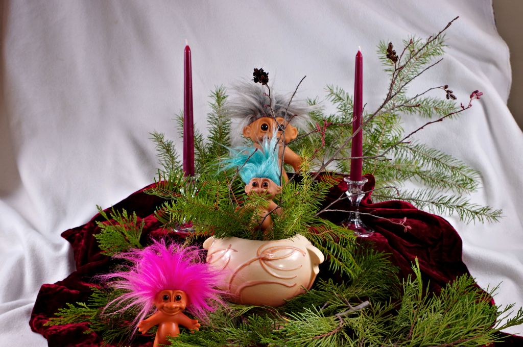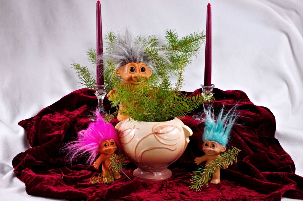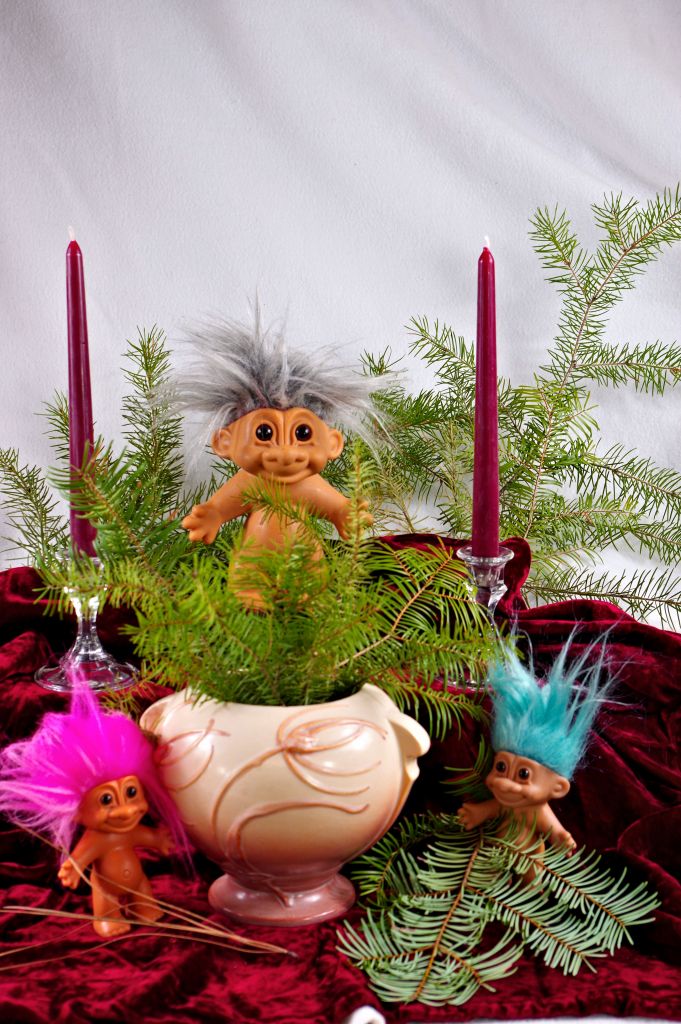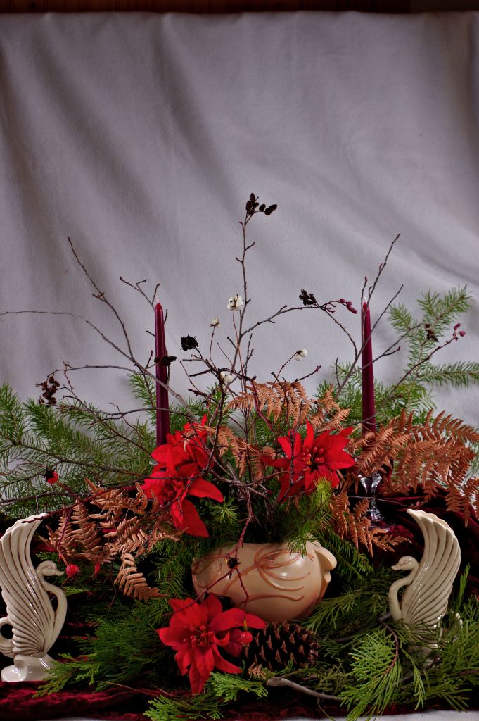 I would have loved to use real flowers. I really could see this with bright red Dahlias… but those are really hard to find in December….