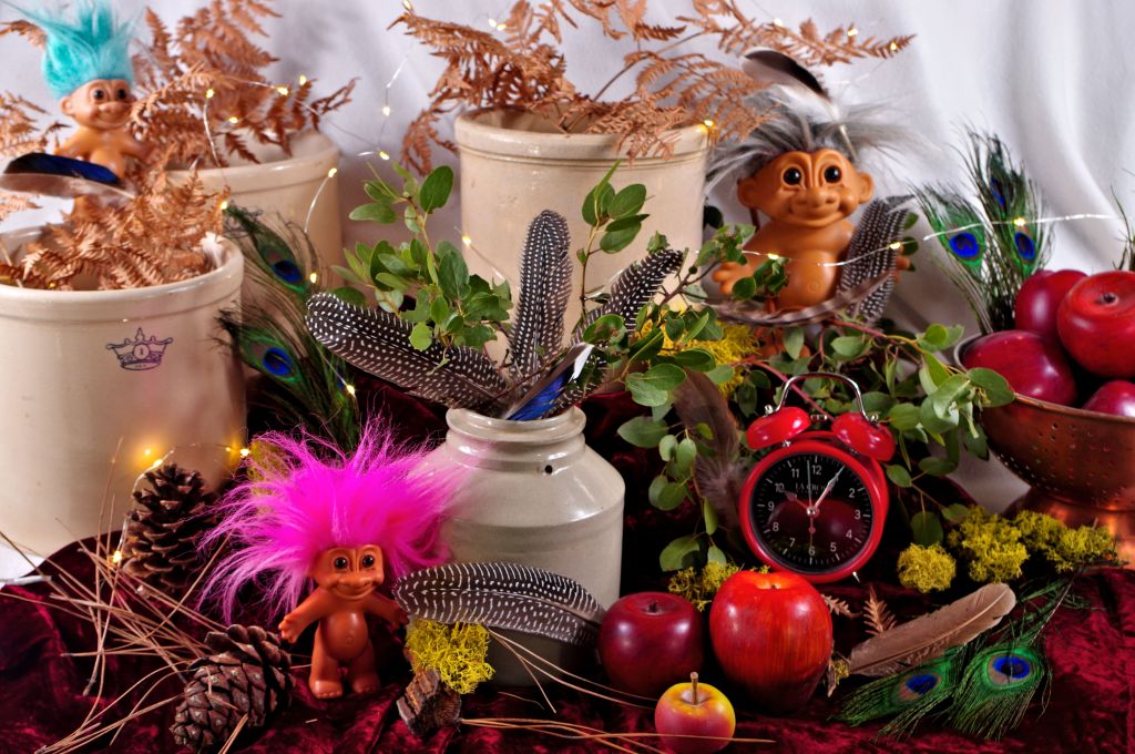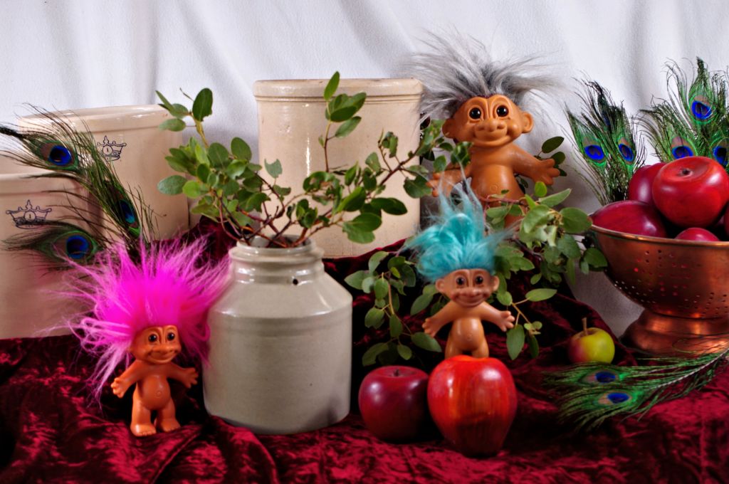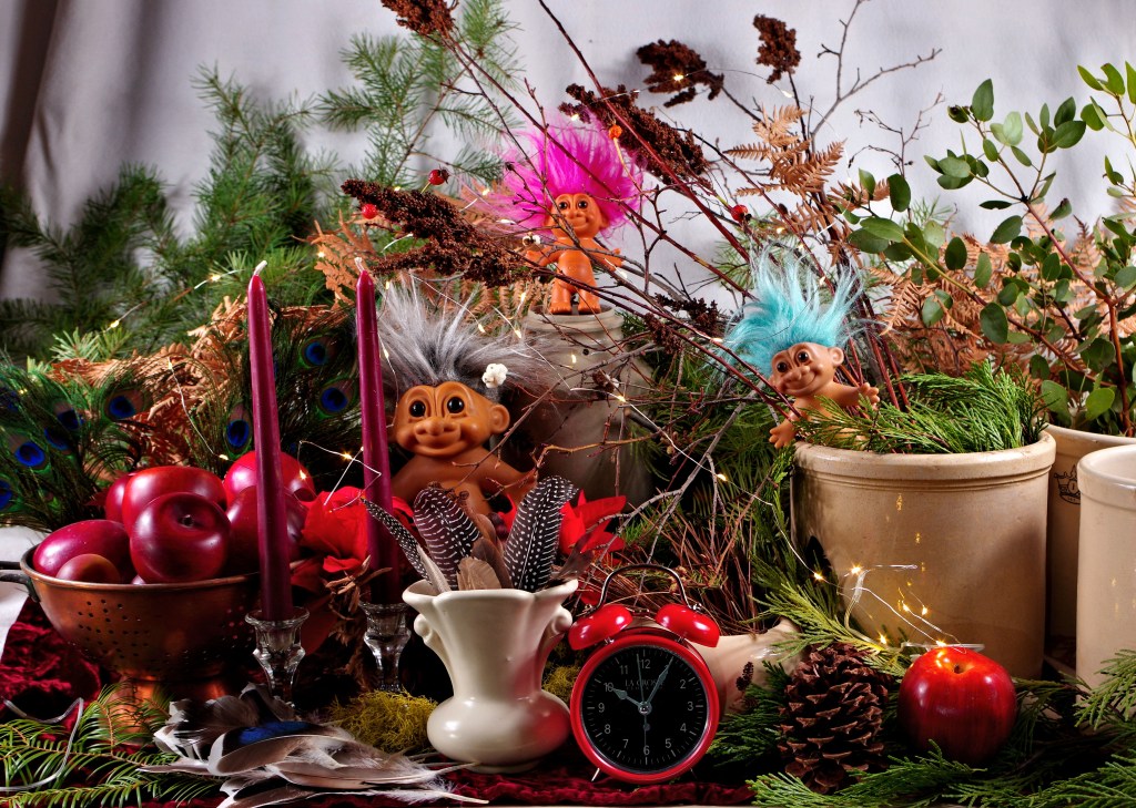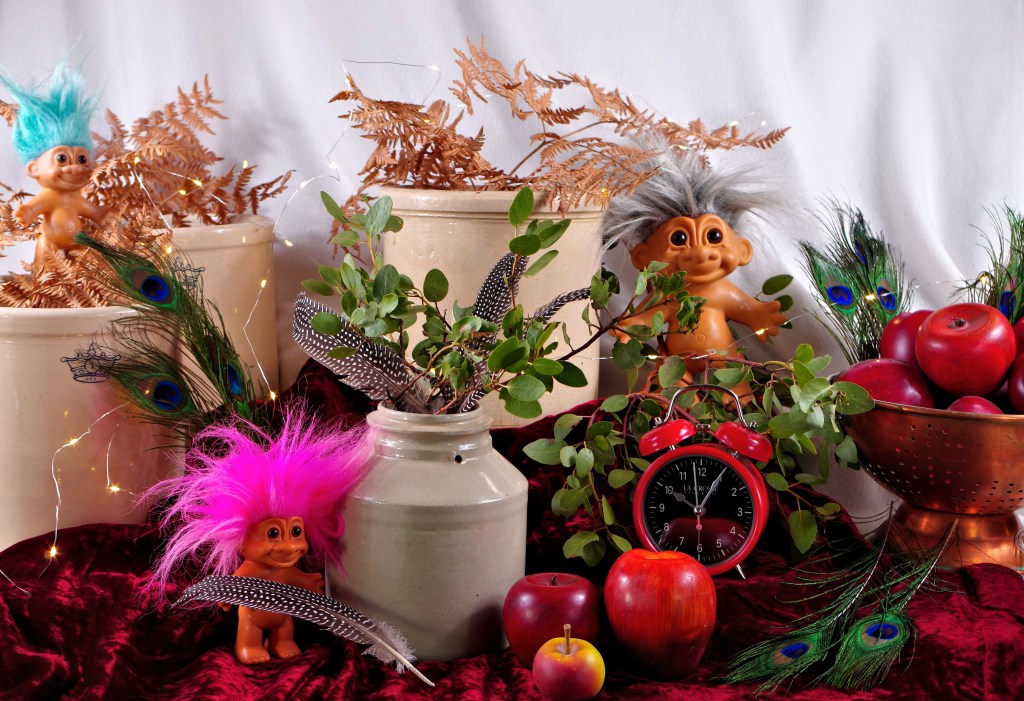 I had challenged myself to do another Christmas style photo shoot using the greenery I picked up last week, and some of the items from the first personal challenge. Somehow when you involve the trolls things don’t always go as planned.